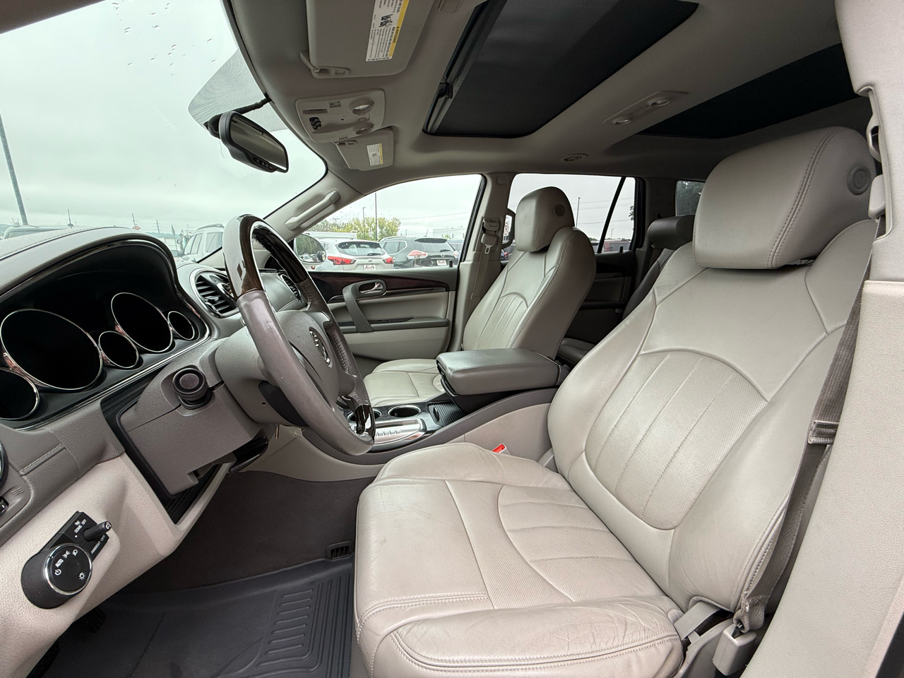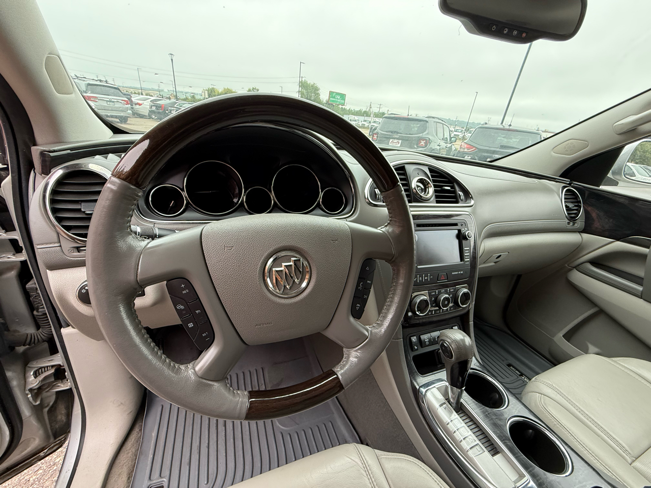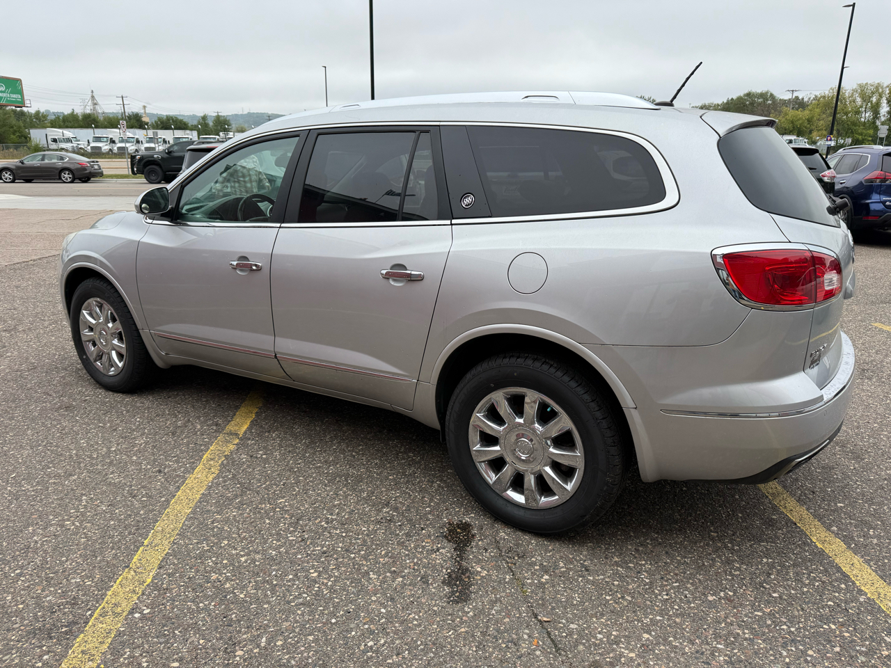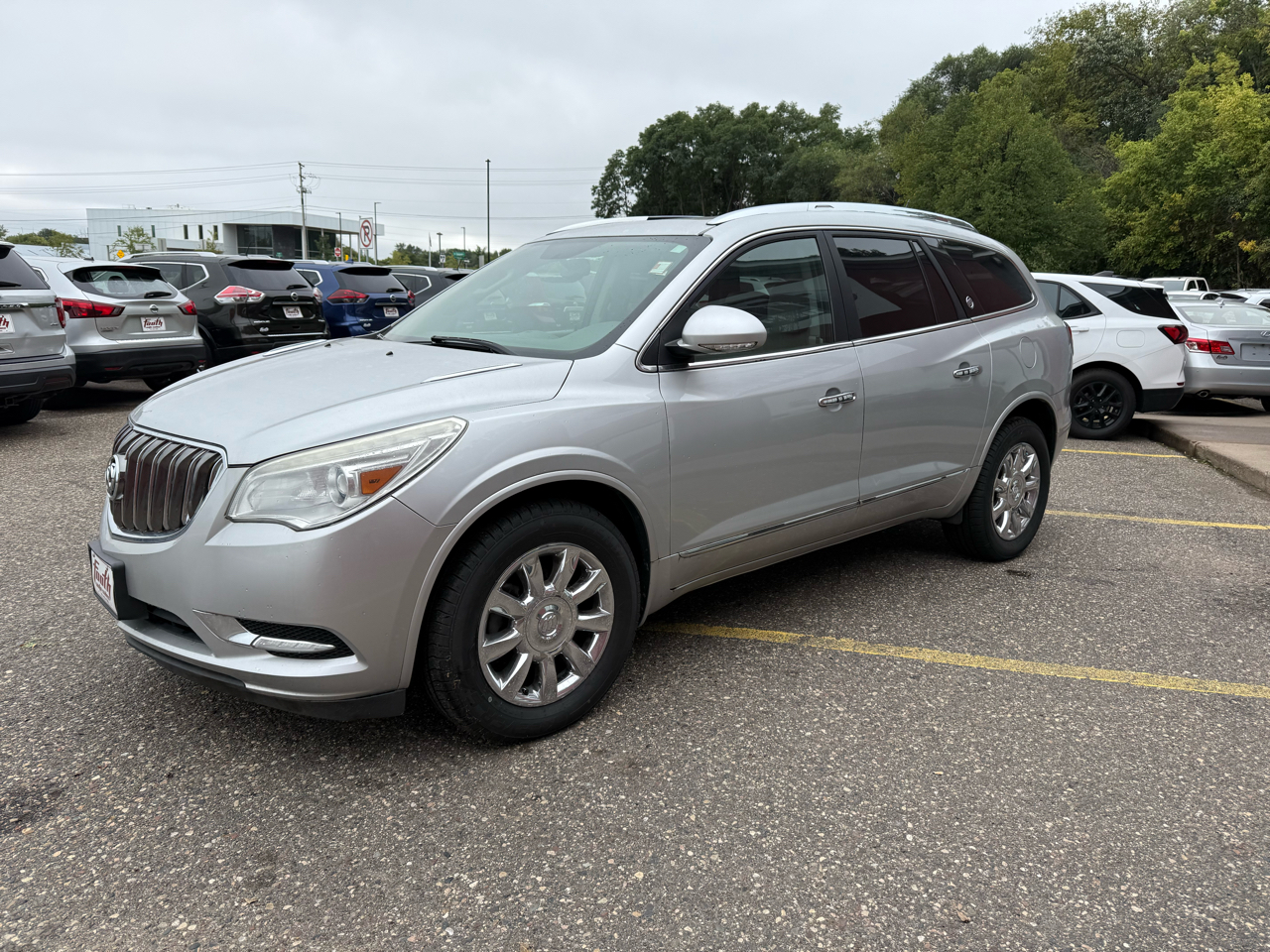 Hop into this sleek Silver 2015 Buick Enclave and experience the ultimate in luxury and versatility. With its stylish alloy wheels and rear spoiler, this SUV is not only a head-turner, but also equipped for any adventure with its 4WD/AWD capabilities. Slip into the comfortable leather seats, which are both heated and power-adjustable to find your perfect position. Let the dual-zone climate control keep you and your passengers at the perfect temperature while the kids stay safe with the child safety door locks and ample airbag coverage throughout the vehicle.Hit the road with confidence knowing you have ABS brakes, traction control, and a vehicle stability control system to keep you secure in any driving conditions. The telematics system and trip computer provide added convenience, while the rear backup camera ensures you can maneuver in and out of tight spots with ease. With so many features packed into this luxurious SUV, you'll find every drive in the 2015 Buick Enclave to be a comfortable and enjoyable experience from start to finish.