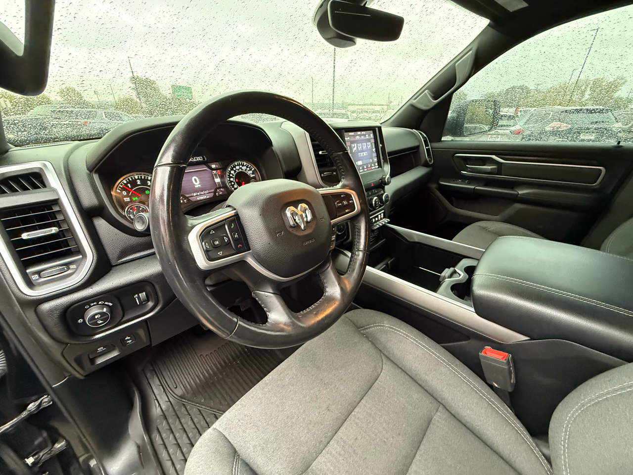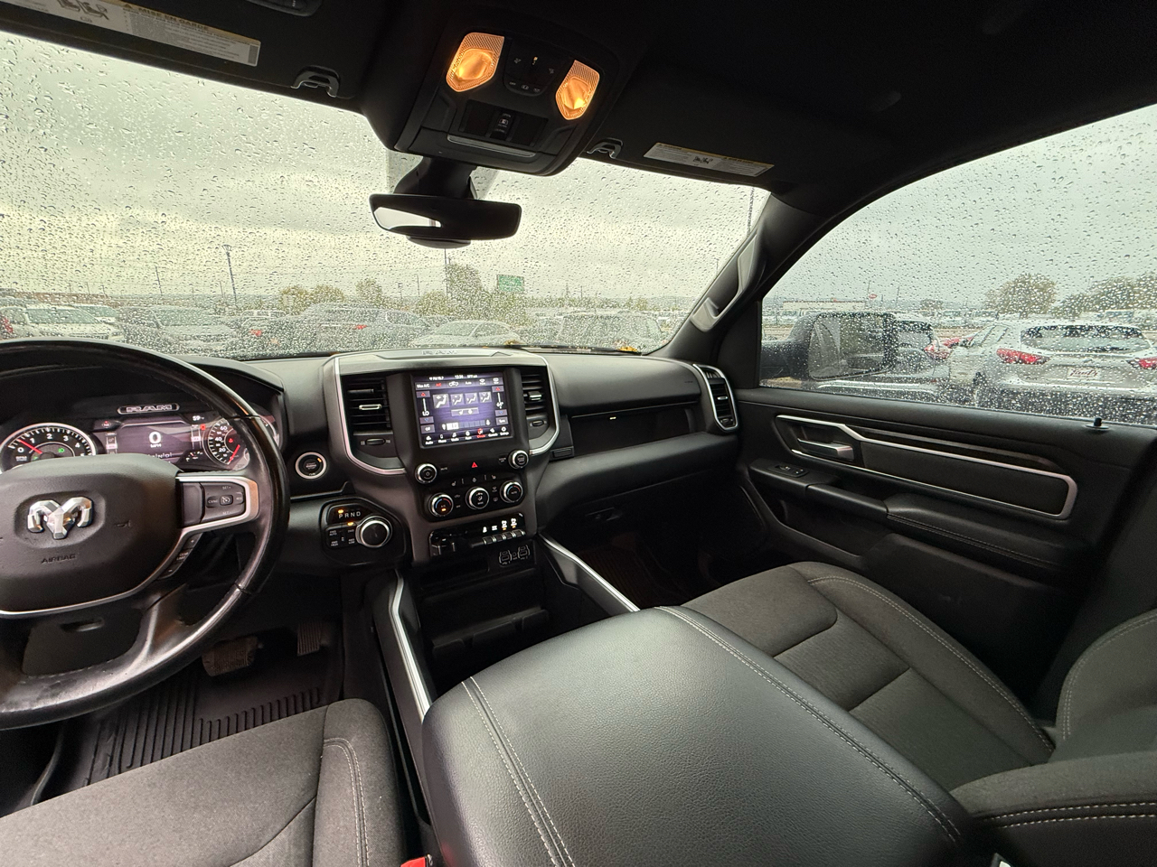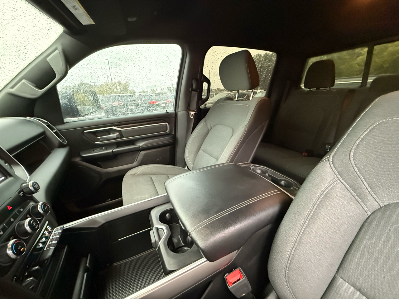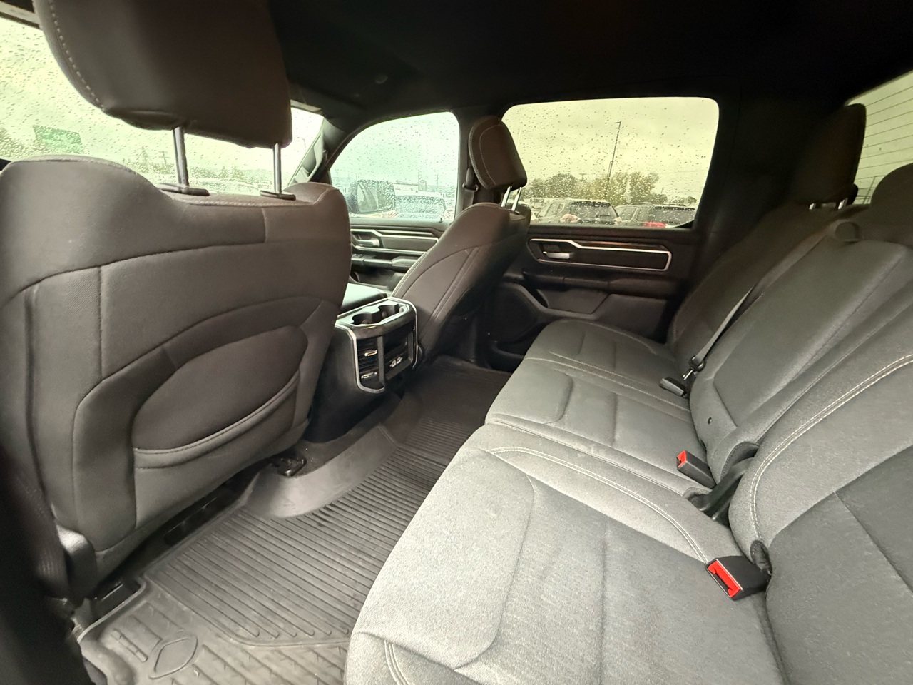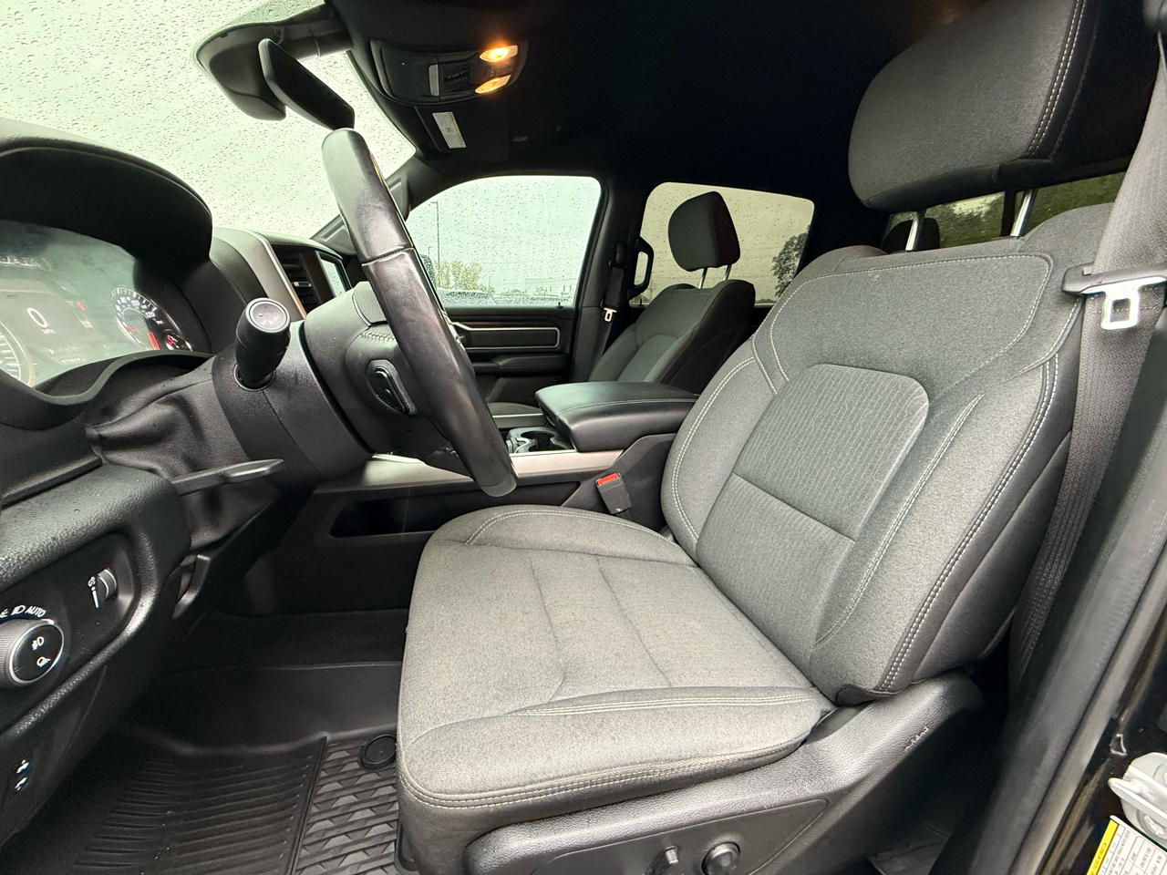 Hop in and buckle up for a ride in this sleek 2021 RAM 1500! With its bold black exterior and shiny alloy wheels, this truck is sure to turn heads as you cruise around town. The spacious front split bench seat provides ample room for you and your favorite copilot, while the telescopic steering column allows you to find the perfect driving position with ease.Safety is a top priority in this truck, with features like child safety door locks, ABS brakes, and multiple airbags scattered throughout the cabin to give you peace of mind on every journey. The fog lights will help guide your way through any weather conditions, while the power windows make it a breeze to let in some fresh air with just the touch of a button.